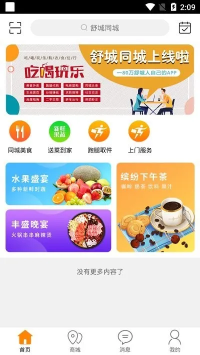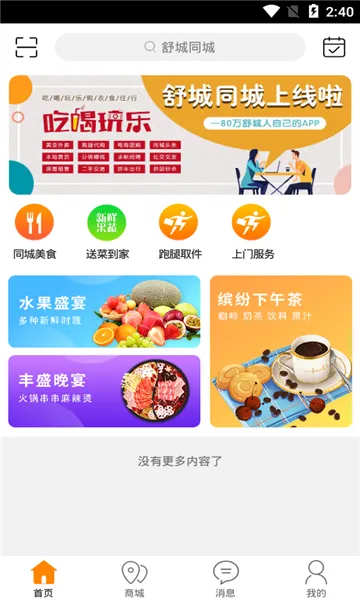它的功能超丰富,有外卖配送服务,特色餐饮、干洗衣服、家政服务等都能搞定。新鲜水果蔬菜免洗免切直接配送,鸡鱼肉蛋等也能快速送达家。社区便利,合作商家众多,20分钟就能送货到家。还有同城购物,涵盖各种服务,产品种类繁多,网上购买直接寄回,节省时间。而且平台外卖分版块,支持搜索,购物更省心。另外还有活动区、全减区、新用户专属区等,享受优惠还能免费快递哦。快来下载舒城同城网,感受便捷生活吧!