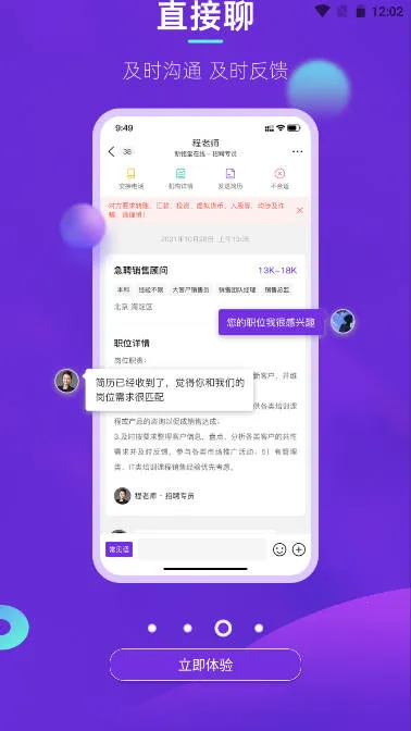 这里没有限制,人们常能在此选到心仪的职位。能接收即时消息,知晓对方动态,还可联系其他求职者交流找工作。