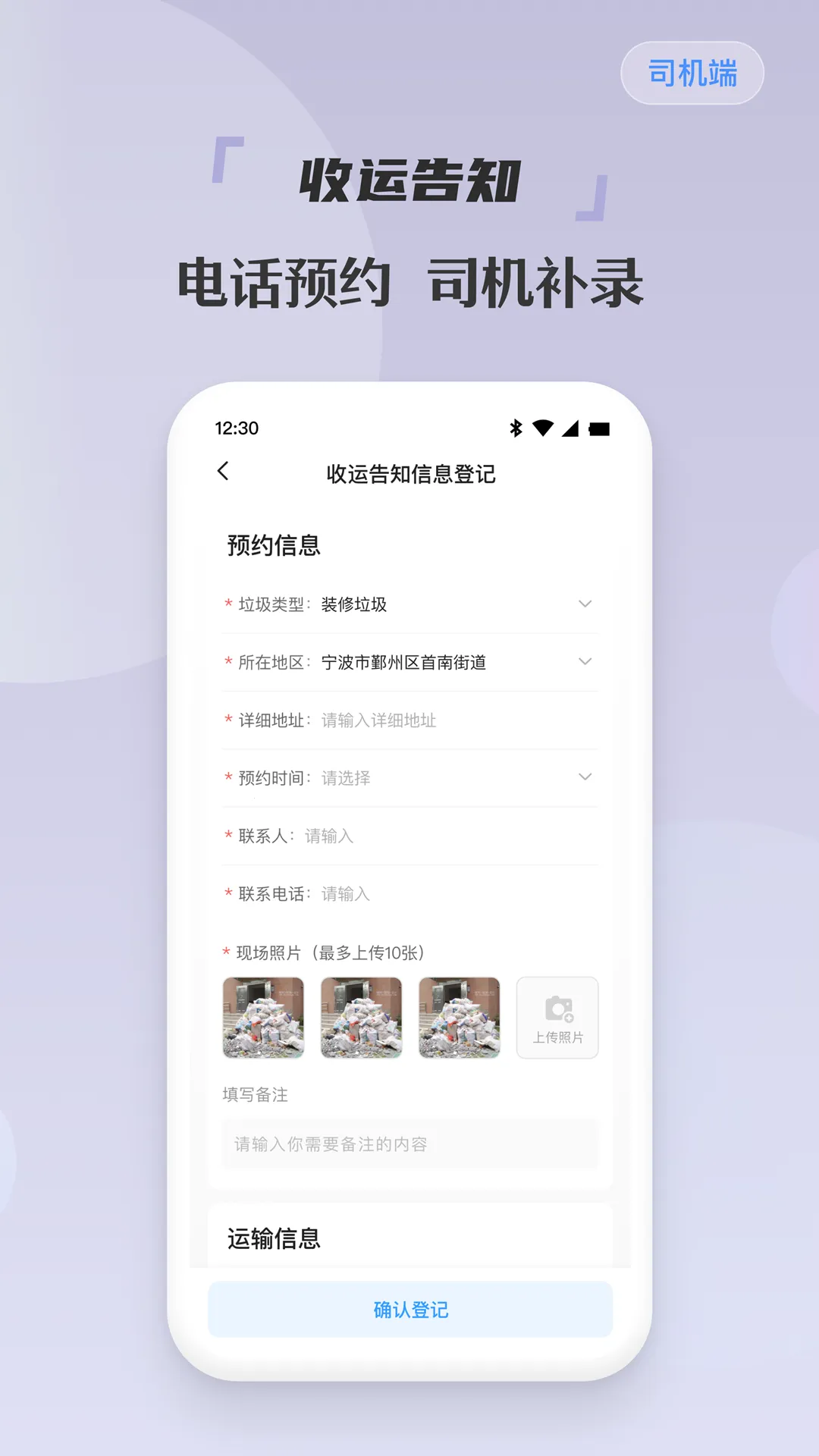在资源共享方面,信息资源免费公开,在线所有资源实时展示,能主动筛选最匹配用户的资源信息。财务票据统计分析功能强大,交易发票可过滤分类展示,随时监控实时状态。此外,还能对人员、场所、车辆进行实时管理,查看当地交通车辆运输司机工作状态以及相关权限分配管理。总体而言,甬废清司机端最新手机版为建筑垃圾回收司机提供了便捷、高效的服务。