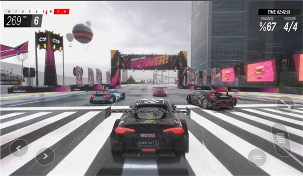 游戏画面场景精致细腻,通过尖端图形引擎完美呈现 60 多款全球知名赛车细节,还有 80 条模拟真实世界名胜的赛道。玩法上,启动游戏点击“JOINRACE”,选地图后加载,屏幕左右侧分别控制方向与加速刹车,跑出赛道点击加速可恢复。到达终点获金币,能在商城解锁新赛车。
