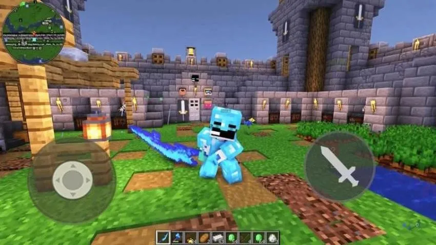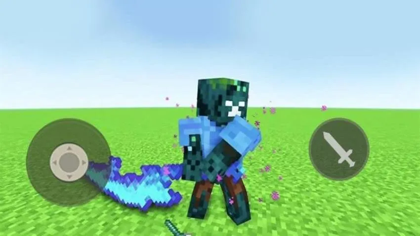 游戏中,像素世界成了整蛊村民的欢乐战场。角色自带特效,拿着发光大剑,在草地城堡等场景中折腾奇葩村民,村民造型各异,有冒紫光的僵尸样式、冰蓝色搞怪造型等。