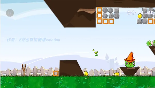3、游戏开始后,按住植物向后拉,并调整发射的弧线后松开植物进行发射