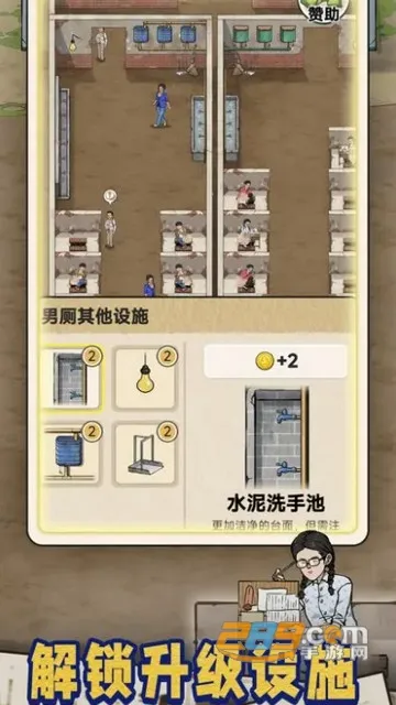 玩家在游戏中扮演厕所经营者,经营一家厕所。通过不断升级设施,如增加洗手盆、烘干机、厕位等,提升厕所舒适度与卫生水平,解锁更多功能。要应对各种突发事件,保障顾客安心如厕,解答顾客疑问,了解丰富如厕知识。还能拍打苍蝇、定期清理厕所,提升顾客如厕体验。出售各类搞笑擦屁工具,解锁众多有趣玩法。通过回收再利用和招商卖粪获取收益,参与挑粪挑战,克服小鸟干扰送达粪桶,设计粑粑标本等。