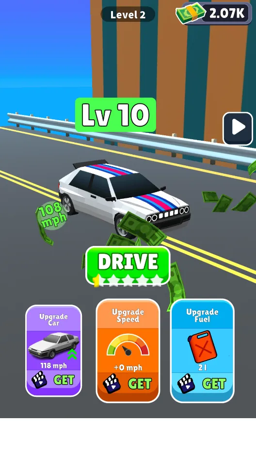 操作方面,进入游戏点击drive即可开始,控制车辆左右移动获取资源。它的界面简洁直观,色彩搭配和谐,图标设计清晰,各年龄段用户都易上手。每次完成特定操作都有即时视觉和音效反馈,增强成就感与参与感,还通过积分、徽章、排行榜等激励持续游玩。