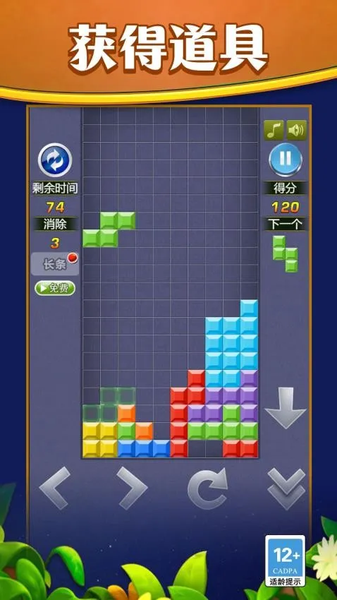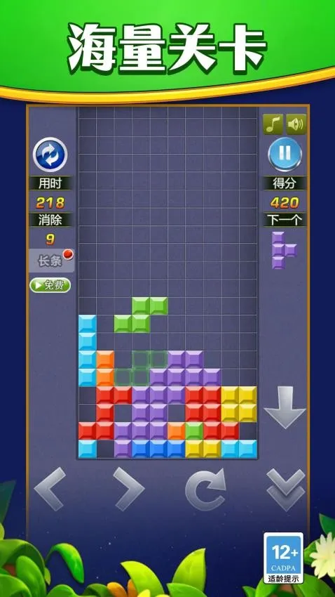 2. 经典升级:在复古与创新交织的界面中,操控方块下落旋转拼接冲击高分。