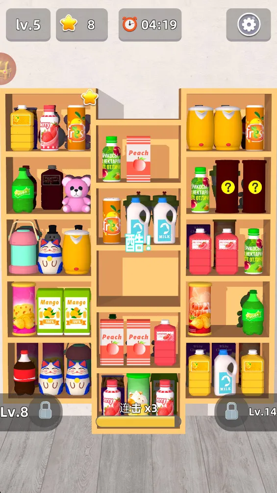 玩的时候,先点击同意并继续进入游戏,读基础规则熟悉界面操作。长按物品拖到指定区域,掌握摆放顺序位置,提高效率。比如把橙子移到下方完成当前关卡,理解消除逻辑和通关条件。掌握基础后挑战后续关卡,难度提升就合理规划收纳顺序,应对复杂布局。这游戏融合仓储整理与消除玩法,关卡多样,操作流畅,能给你带来解压又好玩的独特体验,超适合碎片时间放松。
