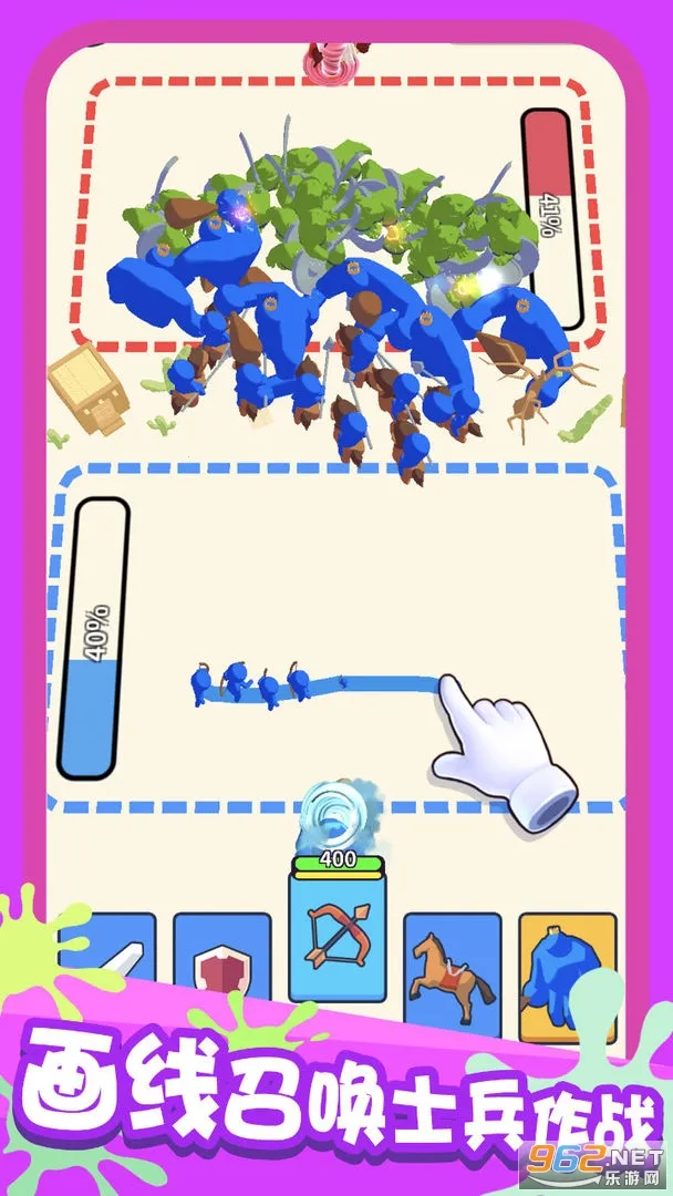 2. 画线操作,体验独特:玩家通过在屏幕上画线的方式召唤士兵加入战斗,这种独特的操作方式带来了不一样的游戏体验。玩家可以自由发挥,随心画出自己的阵型,为战斗增添了趣味性和创造性。