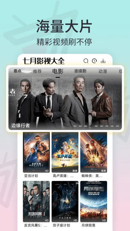 七月影视TV更新后叫七月影视大全。它是一款超棒的影视播放软件。功能超强大,有海量影视资源,电影、电视剧、综艺、动漫啥的都有,能满足各种观影需求。搜索功能厉害,输入关键词就能快速找到想看的。智能推荐系统会根据你的喜好推送内容。支持高清画质播放,视觉体验超爽。还有离线缓存功能,没网也能随时看。界面简洁操作方便。不管是在家还是出门在外,只要打开它,就能轻松追剧看电影。遇到喜欢的还能收藏起来。免费版虽有少量广告,但不影响使用。而且它支持多设备,安卓、iOS设备以及电视端都能用。总之,七月影视大全是影视爱好者的贴心好帮手,能让你尽情享受影视时光。