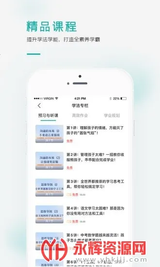 课程资源丰富多样,涵盖精选书籍解读、音视频课程、训练营、直播课程等。其中,爱家读书包含数千本亲子图书,能提升孩子阅读能力;学科超市紧贴教学内容,提供多学科实用知识。