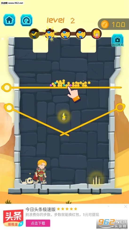 英雄密室脱险手机版是解谜冒险游戏,玩家化身勇士或王子救公主。要拉动针杆调整位置,克服难关。关卡有谜题陷阱,还能收集宝藏赢奖励,适合爱脑筋急转弯的玩家,体验充满挑战与乐趣的密室逃逸冒险。