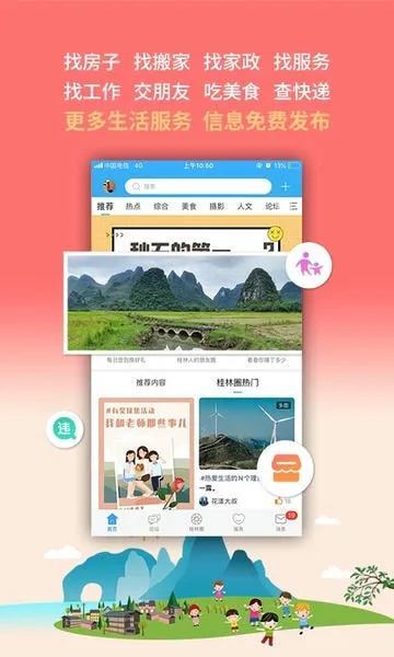 桂林生活网是专为桂林人打造的综合性生活服务软件,涵盖新闻、生活服务等多模块。有海量实时新闻,支持精准查找、发布需求,还有同城交友功能,能让你轻松了解本地动态,享受便捷生活。