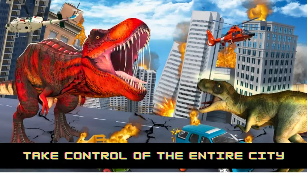 4、爽快刺激的多人联机体验:提供多人联机模式,可与好友组队共闯城市,协同完成破坏任务。支持PVP对抗,恐龙相互较量争夺毁灭领地主导权,团队合作与竞技玩法结合,提升挑战性和趣味性,带来持久游戏动力。