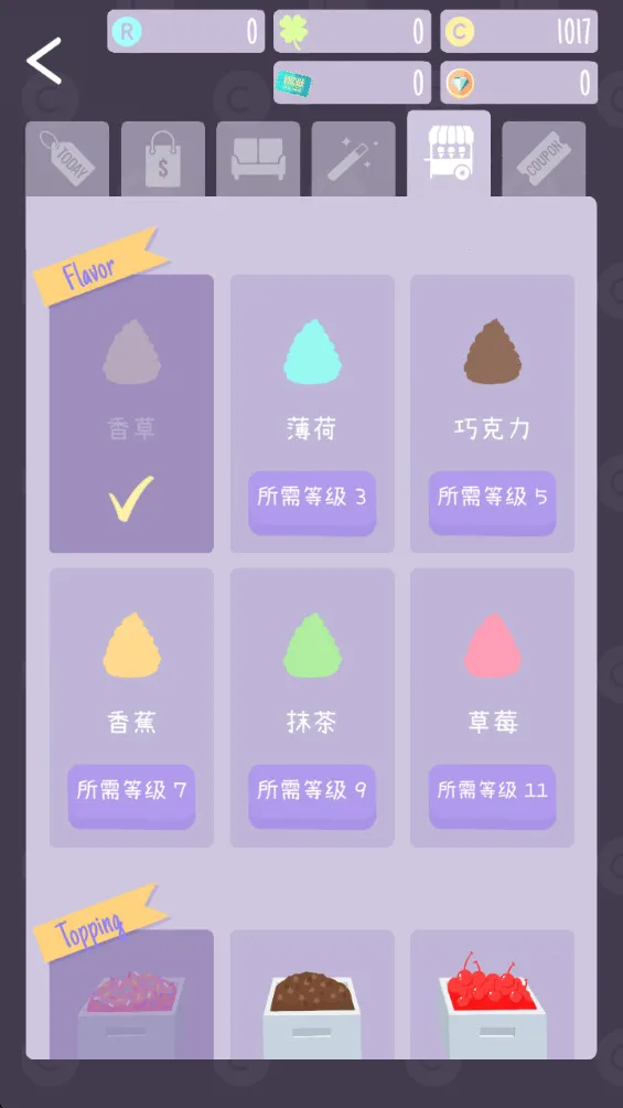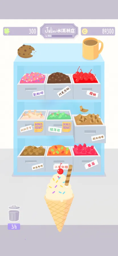 游戏玩法丰富。要根据顾客口味制作,先查看需求,选甜筒、加冰淇淋,长按屏幕控制量,再按要求添加配料。完成制作给顾客,能获爱心评分与金币,提升等级可解锁更多内容。
