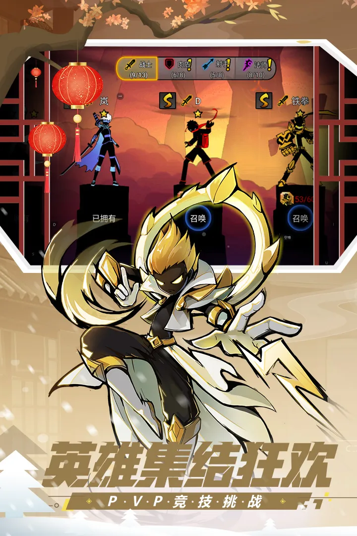 1、多样角色选择:提供多种火柴人英雄供玩家选择,像盖伦、寒冰、铁拳、刀妹子、龙武僧等,满足不同玩家喜好。