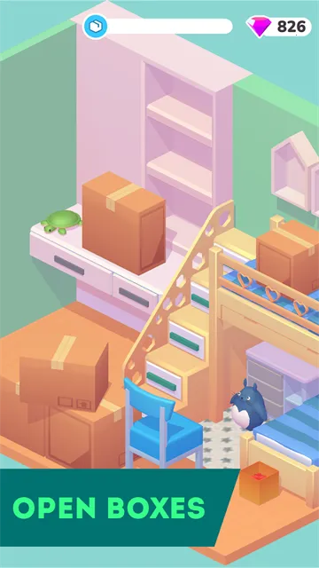 玩法上,先收拾废弃房子,通过拖动物品装箱、收起家具等操作开启关卡。进入关卡后选择风格,摆放家具,完成后系统结算并给予奖励。