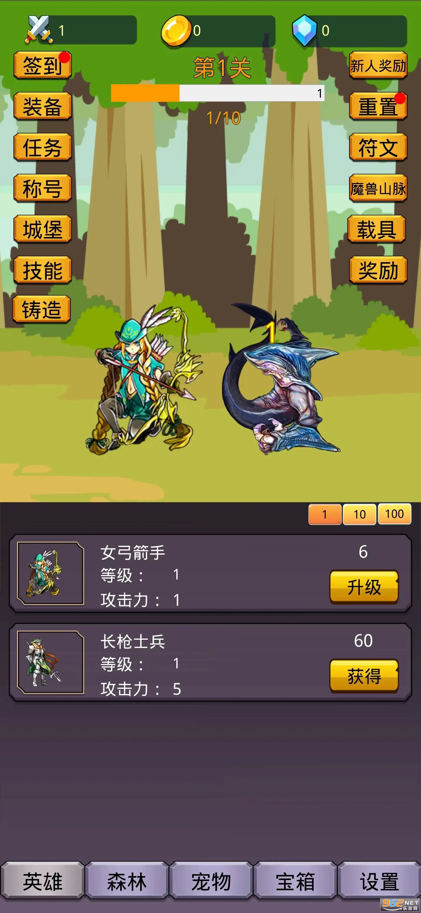 想开启挂机英雄之旅超简单!这是一款超好玩的放置升级冒险游戏。进入游戏,你将穿越异世界,化身英勇斗士。它能满足你轻松升级的需求,哪怕离线也能自动战斗成长。游戏特色满满,内置免广告按键,能让你沉浸式体验剧情。可自由探索发现隐藏任务与宝藏,还有英勇战役玩法和随机副本对决提升实力。玩法丰富,面对敌人热血激战,自动战斗机制超省心,多样角色任你选。开局签到弄装备,推关拿符文,森林玩法升建筑,宠物玩法解锁并升级宠物,装备玩法通过铸造获取。画风清晰,操作简单,能让你尽享冒险乐趣,还有各种精彩体验和Q萌角色等你选择。快来本站下载,开启属于你的挂机英雄之旅吧!