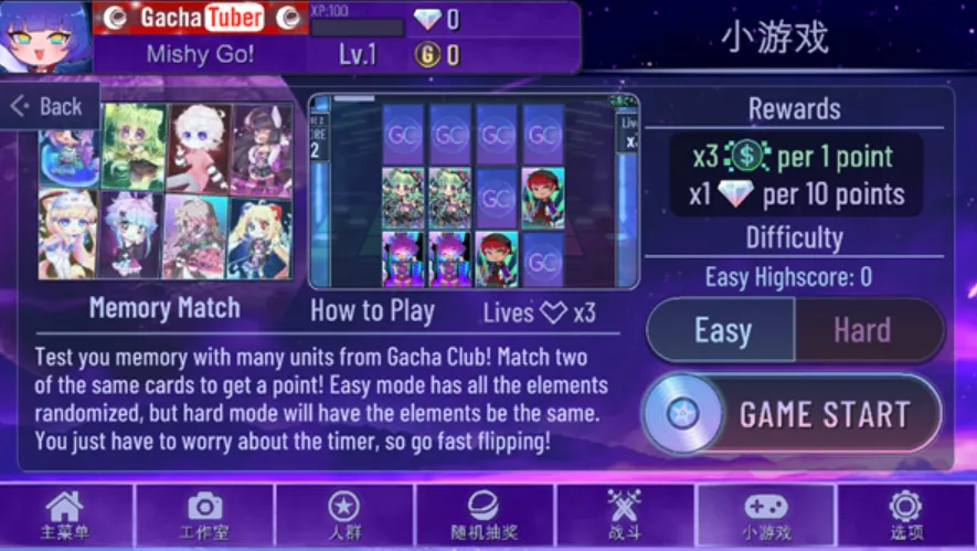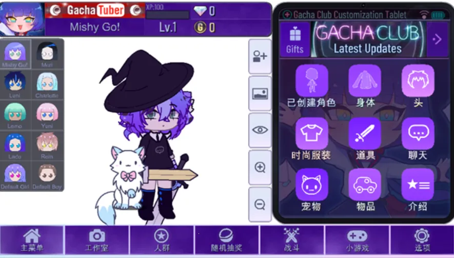 这款游戏的画面十分清新治愈,采用卡通奇幻场景,让人眼前一亮。进入游戏,能轻松点击右下角Language按钮设置成简体中文。自定义人物形象的功能很有趣,可在官方自带人设基础上,随心所欲创建各种角色,还能通过点击右侧按钮设计时尚服装与精美造型。工作室模式也很有特色,能添加不同背景、宠物及贴图。
