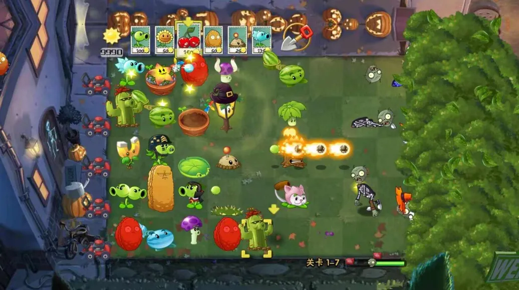 这款游戏在玩法上延续了经典的塔防对抗。玩家通过武装种植植物,切换不同功能,将僵尸阻挡在入侵道路上。游戏中有多种敌人,还有如夕阳、浓雾、泳池等障碍增加挑战。