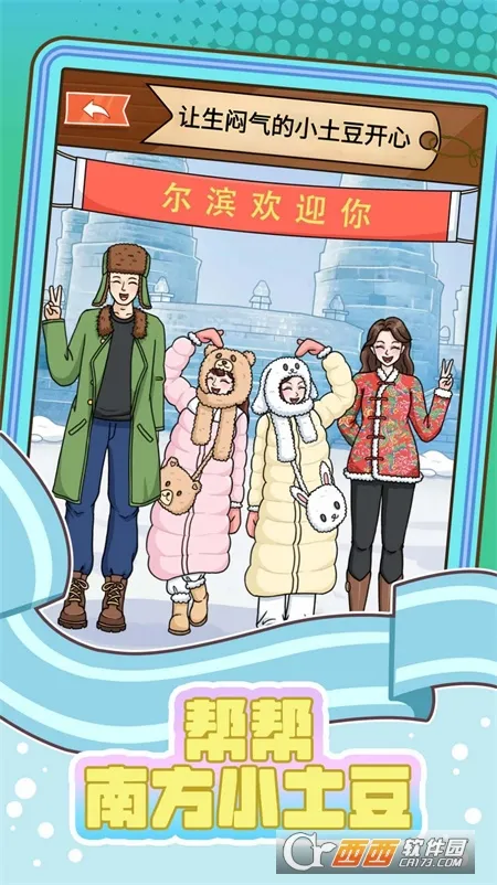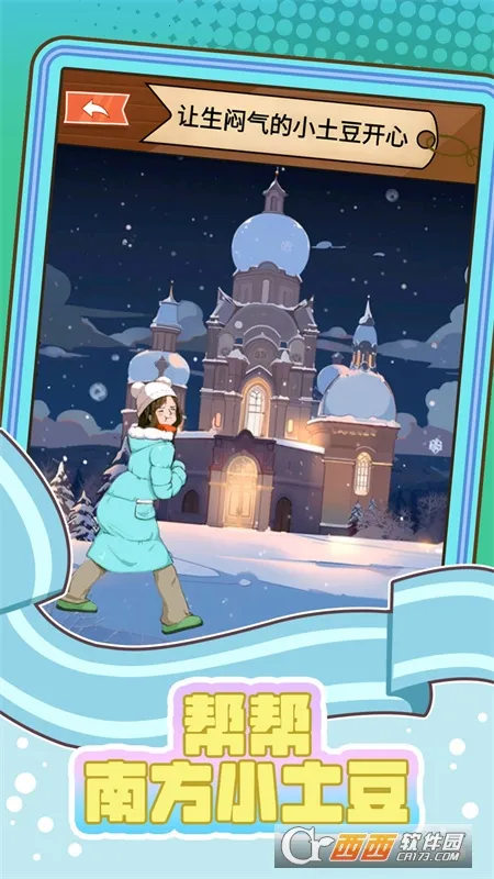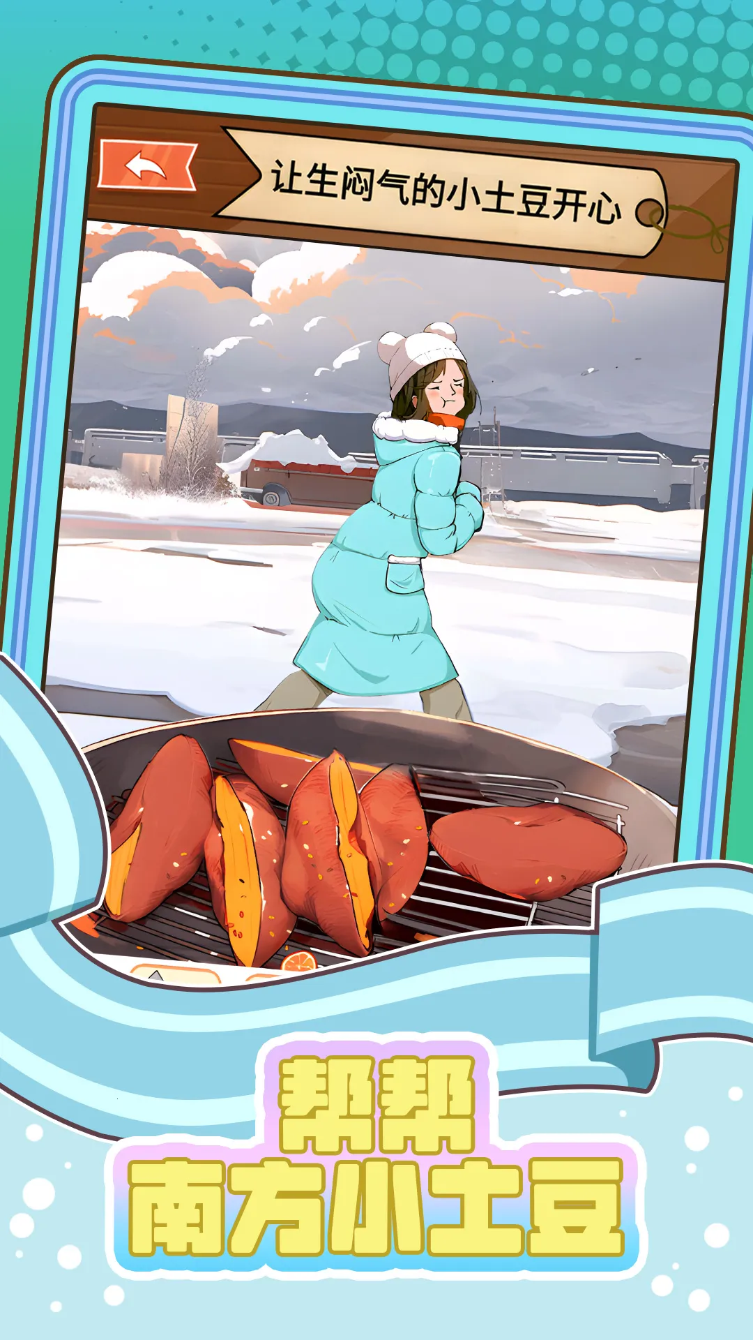 帮帮南方小土豆是一款解谜闯关游戏,适合各年龄段。玩家要帮南方小土豆勇闯哈尔冰,通过50个难度各异的章节关卡,运用道具、观察互动来解谜,挑战智慧,拓展思维,享受闯关乐趣。