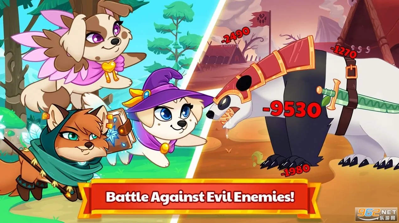 3. 可升级装备:能收集资源和战利品来升级狗狗装备,装备提升有助于狗狗在战斗中更轻松获胜。
