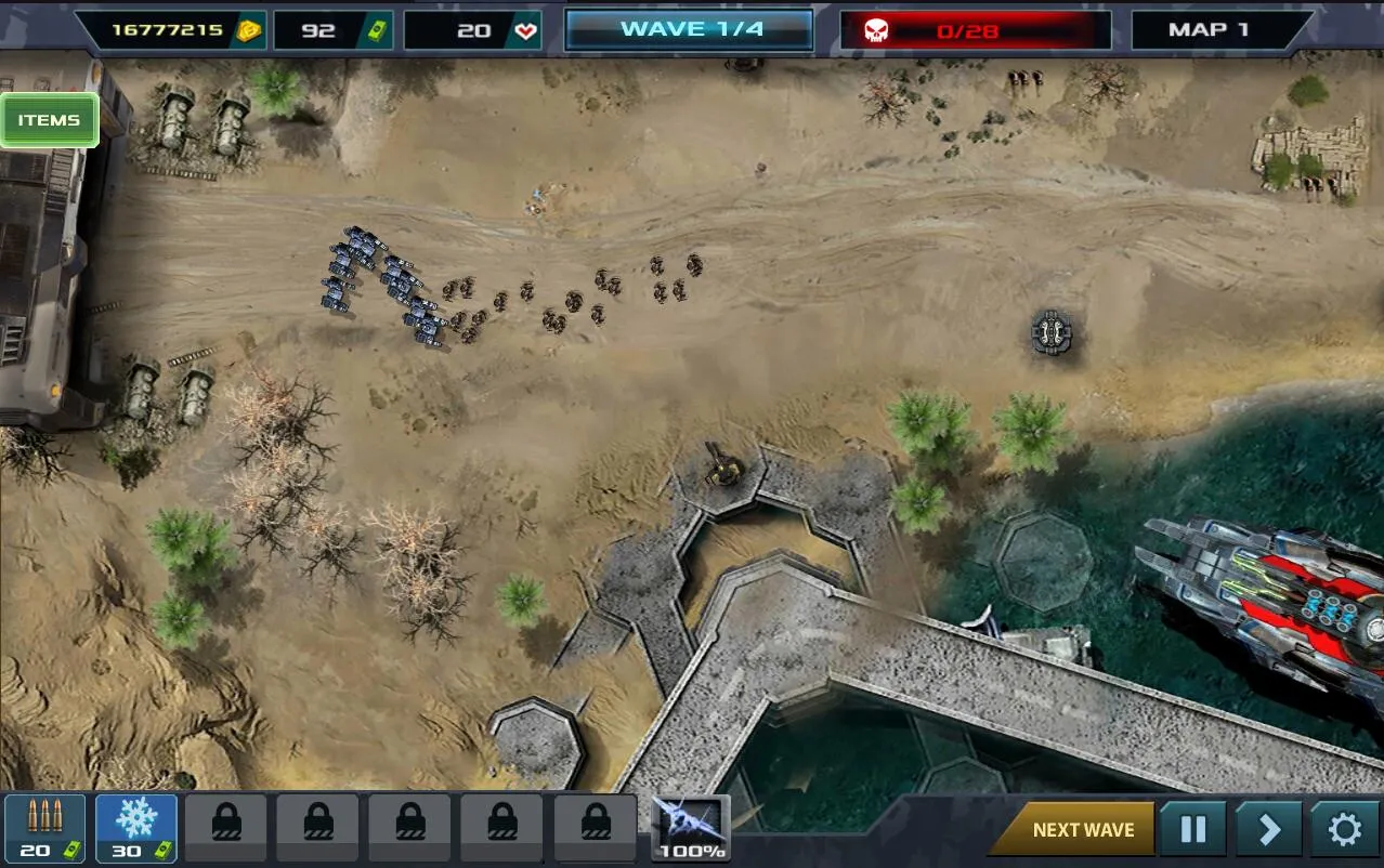游戏特色鲜明。有多张精心设计、变化丰富的地形图纸,每种图纸路径规划与战略要点不同。防御塔设施功能各异,从单体高伤箭塔到范围输出炮塔,还有召唤士兵的兵营。画面精致细腻,构建出魔幻浓厚的未来世界场景,战斗特效与角色动画出色。敌人种类繁多且各具特色,移动速度、生命值、防御能力有差异,还有史诗级巨型BOSS。