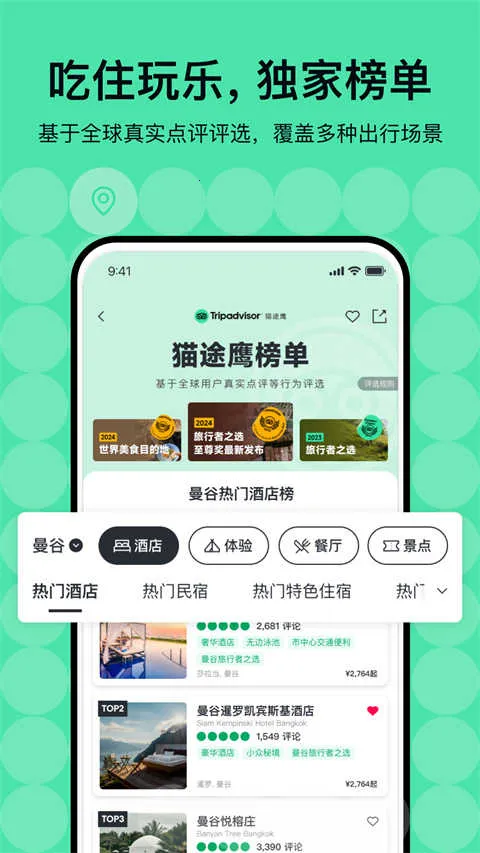 精选内容方面,汇聚全球旅行者撰写的高质量游记、实用攻略与本地向导指南,涵盖热门与冷门目的地,激发旅行灵感。酒店预定支持多币种切换,实时比价,整合餐厅营业时间等实用信息,预订更省心。真实点评基于超6亿条真实旅行者发布的点评,帮用户避开雷区。海量信息覆盖190多个国家和地区的各类场所及活动。